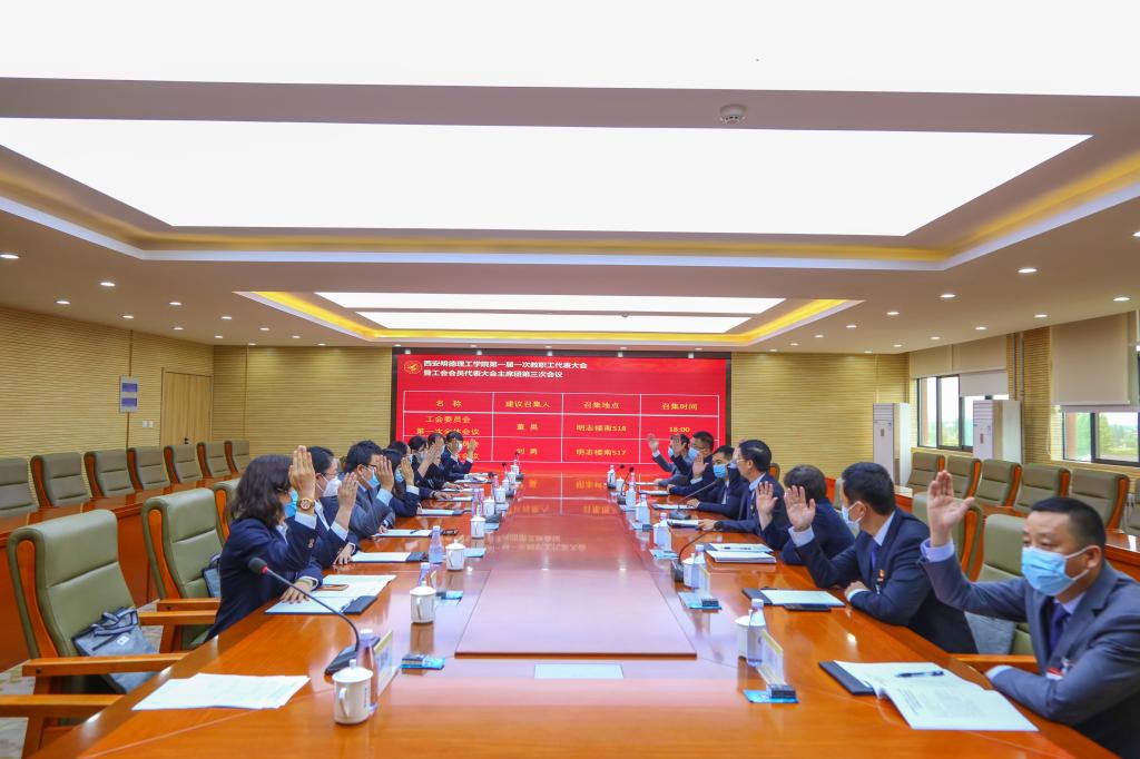 5月14日,LETOU国际米兰官网第一届一次教职工代表大会暨工会会员代表大会在学校建德楼召开。根据疫情防控要求,大会通过视频会议方式设多会场举行。陕西省教科文卫体工会主席徐富权、西北工业大学党委副书记万小朋、明德源教育科技集团常务副总裁张新民、陕西省教科文卫体工会四级调研员闫军思受邀出席,与学校党政领导班子等大会主席团成员在主席台就座。全体代表参加了大会,非代表的中层以上领导干部列席会议。会议由校党委副书记董昊主持。