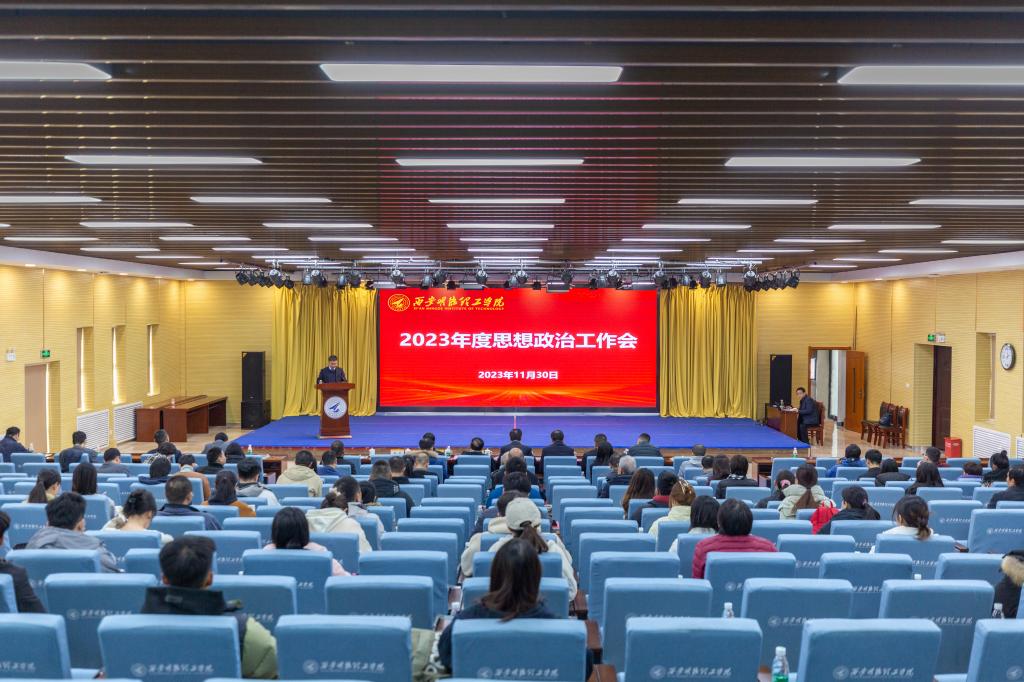为进一步健全完善学校高质量思想政治工作体系,深入实施“时代新人铸魂工程”,着力培养高素质应用型人才,11月30日下午,学校在建德楼203报告厅召开2023年度思想政治工作会议。全体校领导,各职能部门、教辅单位负责人,各二级学院院长、党委(党总支)书记、副书记,教师代表、辅导员代表和学生代表等参加了会议。会议由学校副校长刘星主持。