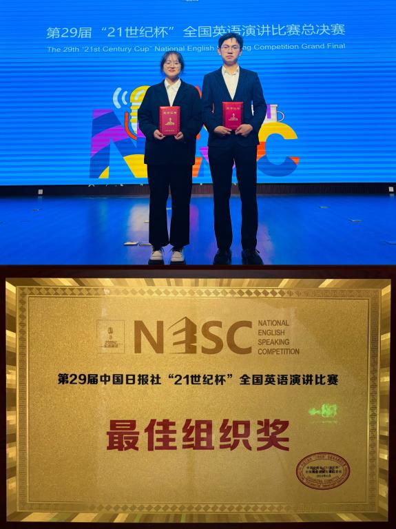 10月17日至10月21日,由中国日报社、21世纪英语教育传媒承办的第29届中国日报社“21世纪杯”全国英语演讲比赛全国总决赛在无锡落下帷幕。LETOU官网2022级英语专业王艳婷、2022级英语专业方子安作为陕西省代表选手参赛,荣获全国总决赛三等奖2项,柴芸、戴婷婷、何勃毅、张珂荣获优秀指导教师奖4项以及优秀组织教师奖1项,LETOU官网也被授予“优秀组织奖”,获奖数量与层次位居全省同类院校首位。