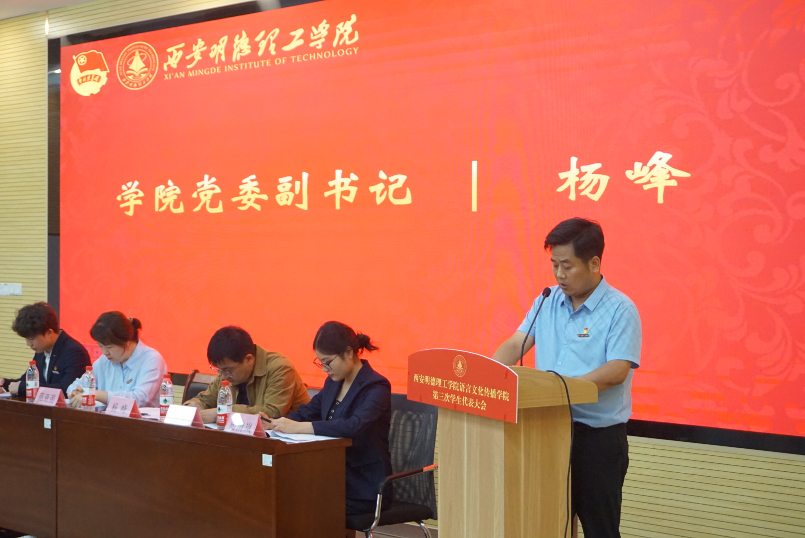 随后,校学生会代表薛东浩致辞,他对语言文化传播学院第三次学生代表大会的召开表示热烈的祝贺,并对我院上一年的学生工作给予了肯定,同时对学生会工作做出指导,并提出了对未来工作的期望。