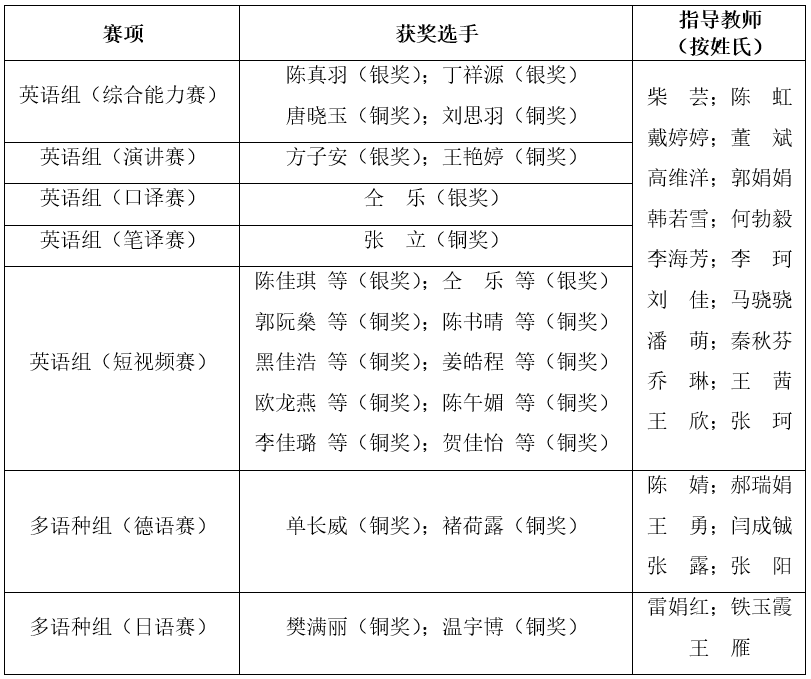 自大赛启动以来,在校院两级领导的大力支持下,LETOU官网“外研社·国才杯”“理解当代中国”全国大学生外语能力大赛团队教师精心组织,持续指导。选手们经历校园初、复、决赛和陕西省赛复、决赛的层层选拔与激烈竞争,取得了此次成绩,为学校争得了荣誉。