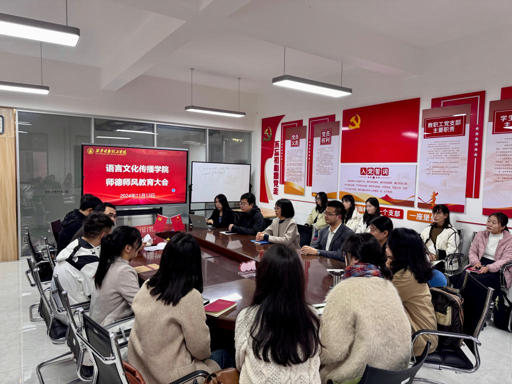 11月13日,语言文化传播学院在明志楼406召开师德师风教育大会。学院2024年新入职教师30余人参加会议。会议由学院党委书记赵旭东主持。