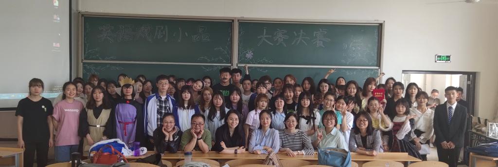 519日下午,由英语专业教研室组织的第二届英语戏剧小品大赛决赛在立德楼205教室拉上了帷幕。语言文化传播学院副院长刘勇、英语专业负责人柴芸、专业教师李云平观摩了比赛,谢岩、卓雯、范辉、董斌、吴琼、游瑞华、吴文娣担任决赛评委。