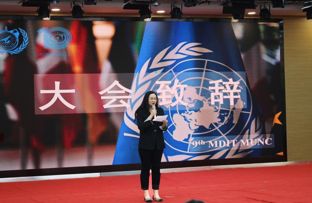 刘勇在致辞中指出LETOU国际米兰官网作为陕西最早举办模拟联合国活动的高校之一,长期致力于培养学生的国际视野和跨文化沟通能力,并取得了优异的成绩。她强调2023年是明德模联团队创立十周年,这为第九届明德模联大会的举办赋予了特殊意义。