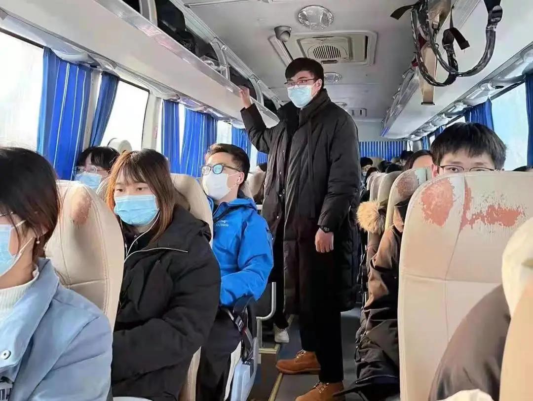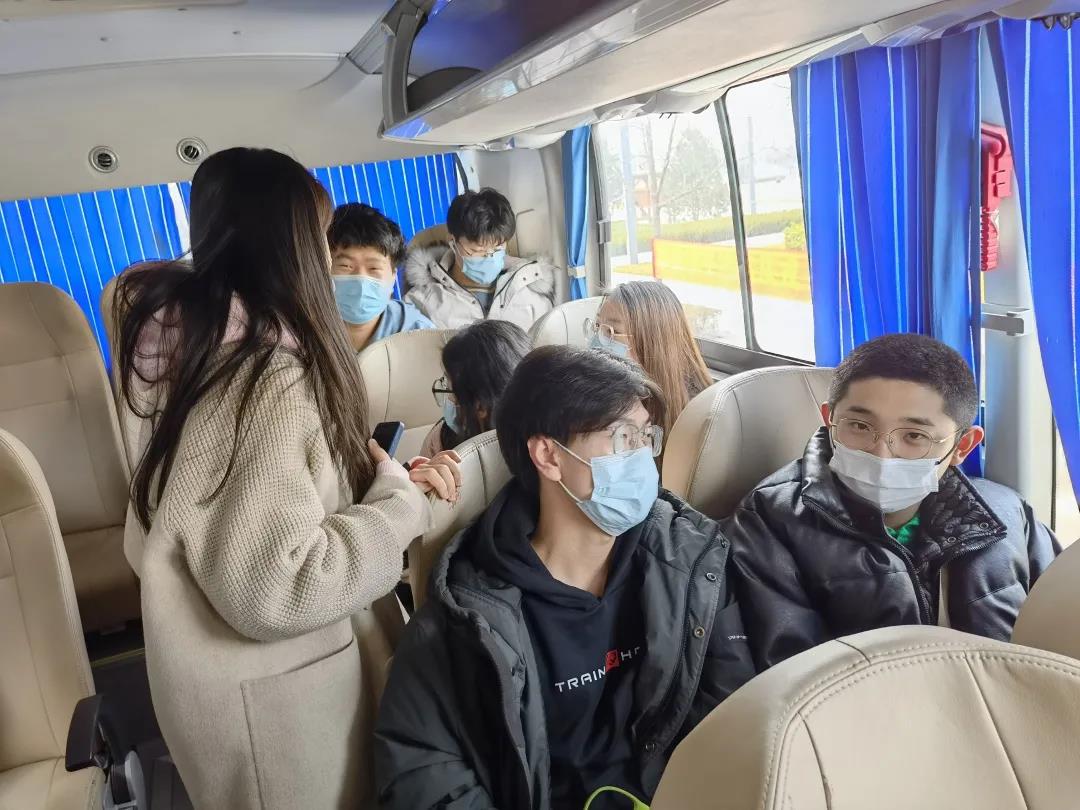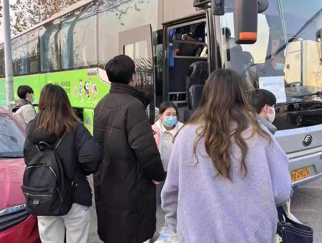 同时,由辅导员、老师提醒学生带齐考试所需物品。学生准时到达乘车点后,每一辆送考车上的辅导员和志愿者都贴心地为考生做好核酸查验及测温工作,清点好人数,确保不漏一人,随后按照提前规划好的时间、地点将考研学子准时送达。考试结束后,我院送考队伍准时出现在考点外,等待接学生安全返校。