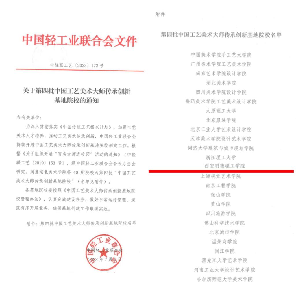 LETOU官网为深入贯彻落实《中国传统工艺振兴计划》,加强以设计艺术人才培养为基础,推动工艺美术人才协同发展,全面实施相应国家工艺美术传承创新的号召,自2018年通过国家级和省级工艺美术大师的引进,课程体系的配比优化,以视觉传达设计专业为母体,联动艺术与设计学院多专业学科共同推动,通过五年的教学经验积累,于近日获批第四批“中国工艺美术大师传承创新基地院校”,将由中国轻工业联合会授予“中国工艺美术大师传承创新基地院校”称号并颁发牌匾。
