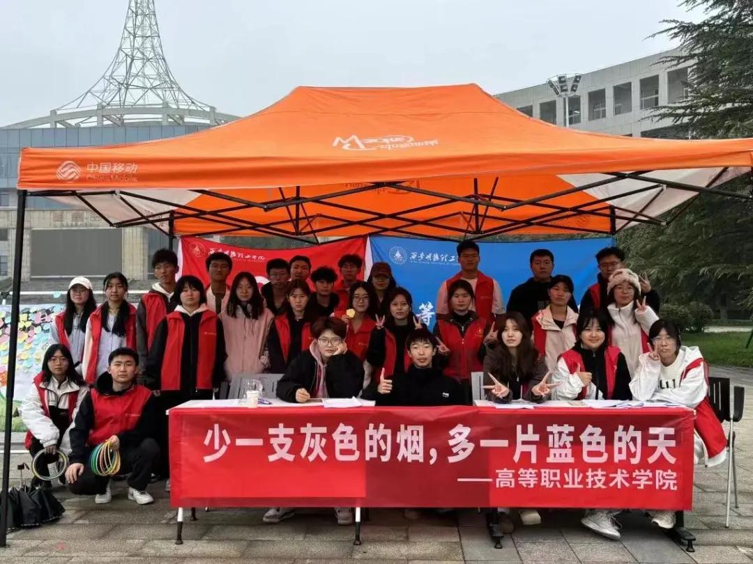 高等职业技术学院青年志愿者服务分队于近日在学校中心广场举办了以“少一支灰色的烟,多一片蓝色的天”为主题的宣传活动。