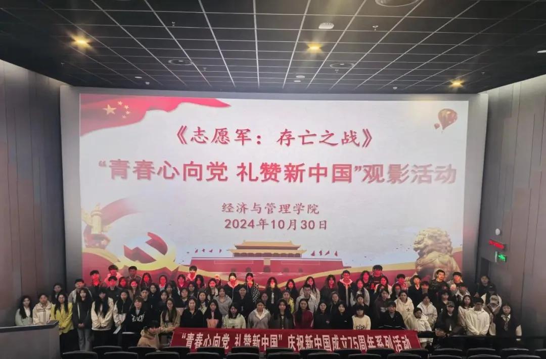 10月30日下午,经济与管理学院组织开展第二课堂德育实践暨“青春心向党,礼赞新中国”主题观影活动。