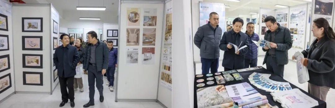 此次学生优秀作品展在专业教师的指导下,由学生完成布置,布展期间,恰逢省教育厅领导来校检查,省厅领导择机参观了作品展览并给予了高度评价。展览现场,一件件精美的作品令人目不暇接。从独具匠心的室内设计方案到细腻逼真的手绘表现,从精致的软装搭配到高科技辅助下的3D效果图制作,这些作品无不彰显学生们扎实的专业功底与无限创意。前来参观的师生们纷纷对这些作品表示赞赏,认为此次展览不仅是学生们学习成果的一次集中汇报,更是室内艺术设计专业教学成果的生动展示。