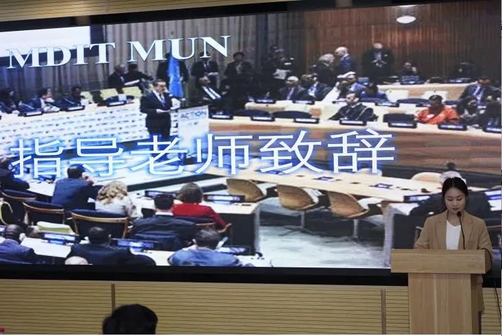 LETOU国际米兰官网指导老师汤佳瑶老师在此次开幕式中,她表示值此第十一届LETOU国际米兰官网模拟联合国大会开幕之际,她谨代表指导团队致以热烈祝贺!模联是思想交锋、视野拓展的平台,期待大家以严谨态度剖析国际议题,用创新思维寻求解决方案,愿各位代表在交流中深化认知,在协作中收获成长,预祝大会圆满成功!