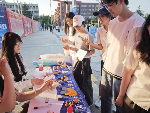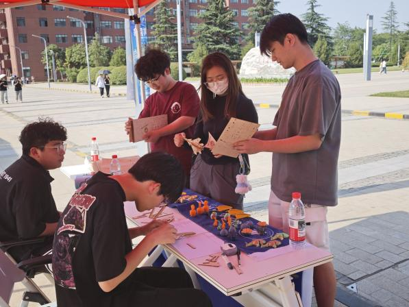 飞行表演之后,智控学院学生会组织了轻木飞机现场制作体验。同学们在工作人员的指导下动手拼装、打磨、调试,亲身体验从零开始构建一架小型飞机的完整过程,沉浸式感受模型工艺的魅力。此外,现场还设置了3D打印展示与礼品赠送环节,展出了多种由师生自主设计制作的3D打印作品,包括机械构件、个性化模型等。部分参与体验的同学还获得了精美纪念品,笑容满满。