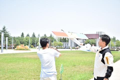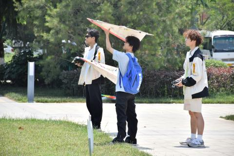 活动首日,学院航模队率先登场,带来多款自制飞机的飞行演示,包括“单翼机”“三角翼板机”等多种型号的模型飞机在空中盘旋、俯冲、翻滚,飞行动作一气呵成,惊艳全场。队员们熟练操控航模,展现了精湛的飞行技术和深厚的专业素养。每一次精准的飞行操作都引发阵阵掌声,不少师生纷纷拿出手机拍摄留念,现场氛围热烈非凡。