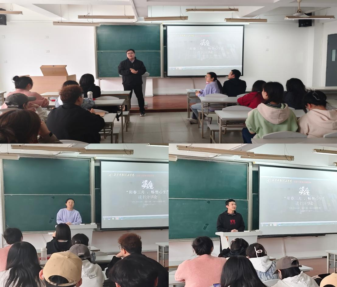 为进一步提升心理育人实效,推动学院学生心理健康工作迈上新台阶。3月27日下午,经济与管理学院团委牵头204052304、204052306-07班团支部在育德楼301教室举办“阳春三月·畅想心生”心理主题读书分享会。团委书记、相关班级辅导员老师参加了分享会,分享会由204052304班宣传委员张茜茹主持。