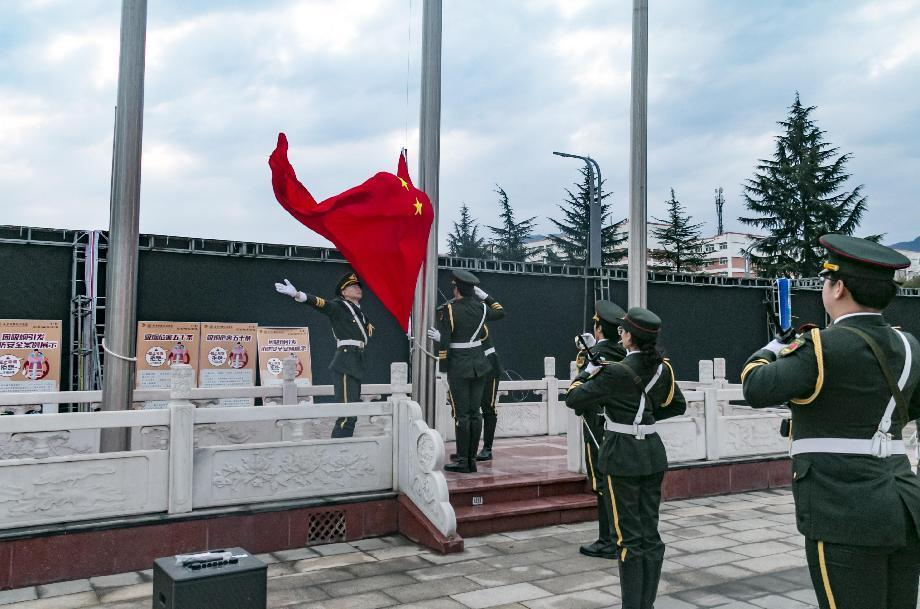 清晨6时50分,在国旗护卫队庄严的护送下,伴随着庄严雄壮的国歌,五星红旗冉冉升起,全体师生肃立、行注目礼。