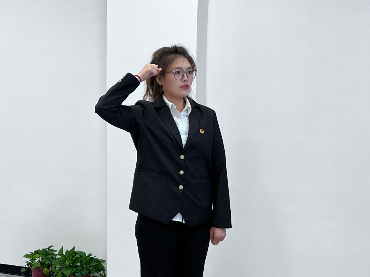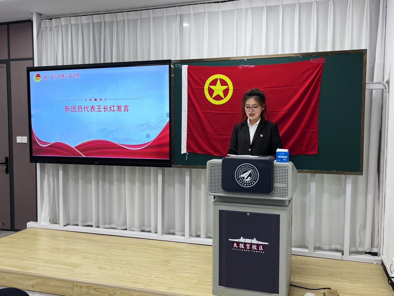 王长红作为新团员代表发表了感言,对于加入中国共产主义青年团,她表示无比荣幸与激动。她说道,入团对大学生而言,不仅是从青涩少年到成熟个体的转变,更是从普通学生到具有先进性和纯洁性的共青团员的升华,在这个过程中,她深切感受到了团组织的温暖与力量,也认识到了作为一名团员所承担的责任与使命,从这一刻起,胸前的团徽熠熠生辉,明确了新的人生方向,她表示将以饱满的热情和坚定的信念投身于学习和实践中,为实现国家富强、民族振兴、人民幸福贡献自己的青春力量。