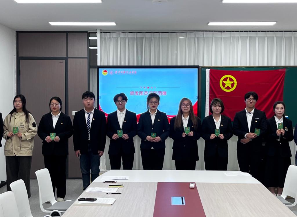 为深入学习贯彻习近平新时代中国特色社会主义思想和党的二十大精神,进一步增强共青团员“四个意识”,坚定“四个自信”,做到“两个维护”,强化团员队伍先进性建设。3月28日晚,艺术与设计学院团委在莲湖校区“一站式学生社区”302党建活动室举行了一场庄重而温馨的入团仪式。学院学生党支部书记朱迪、学院团委书记兰艳、学院团委副书记王晨宇,学院学生会主席、功能性团支部代表王智锐以及团学干部、新发展团员出席本次仪式。