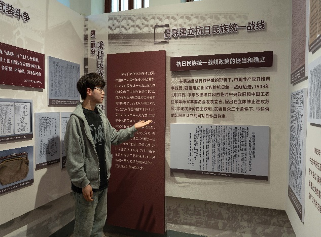 纪念馆的陈列展览以西安事变为主线,分为“历史的转折——西安事变史实展”“千古功臣—张学良将军生平展”等多个部分,在参观第一场馆内陈列的一件件文物的过程中,同学们深切感受革命先辈为国为民的崇高精神。