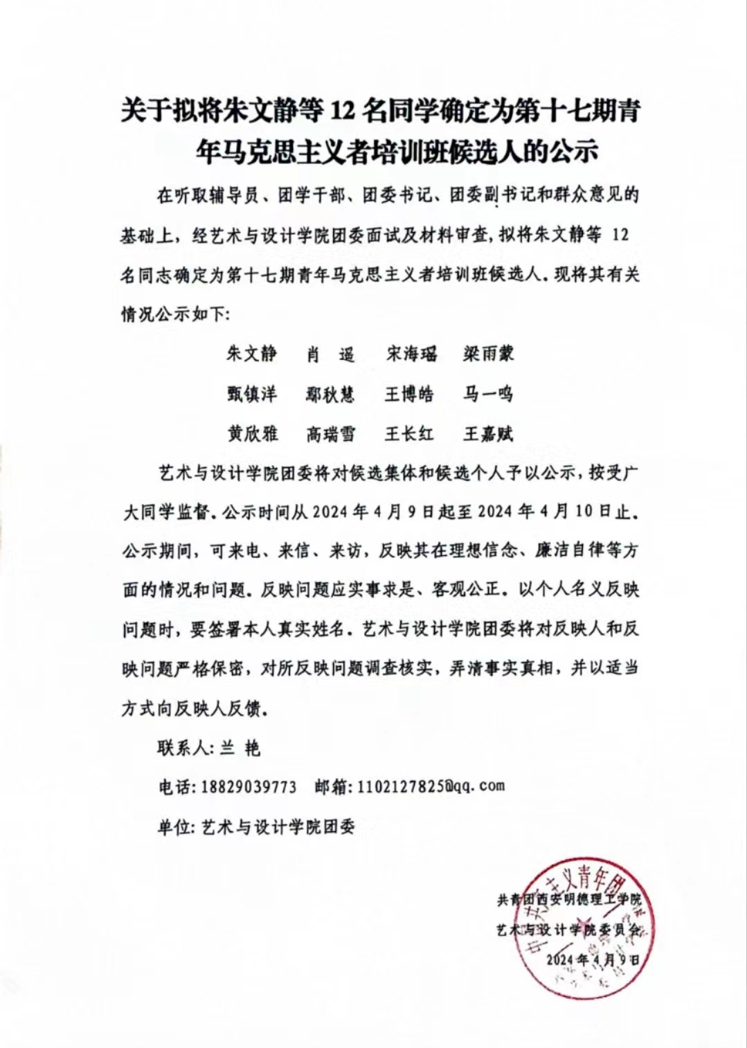 艺术与设计学院第十七期青年马克思主义者培训班选拔工作圆满结束