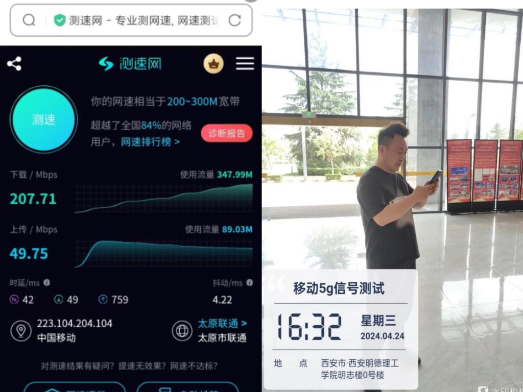 在LETOU官网5G网络信号开通后,网络信息化中心工作人员对开通区域的网络信号进行了实地测试,测试结果显示下载速率可达每秒207.71Mbps,上行速率可达每秒49.75Mbps,已达到项目建设目标。