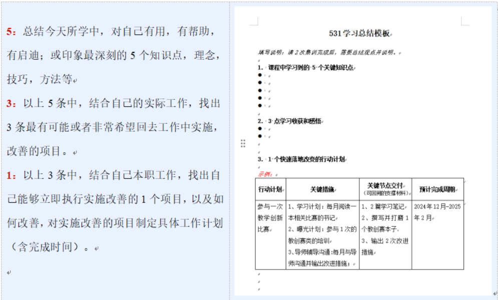 (1)531学习总结法:学习内容可视化和最大化,可以让教师看到收获、恢复信心,也是推动课后应用的冲锋号。