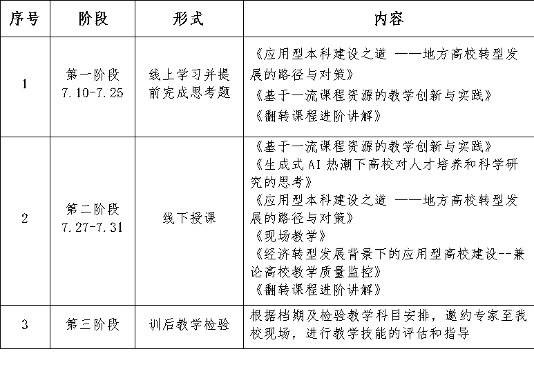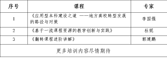 详细内容见附件1:骨干教师及教学团队能力建设培训内容。培训日程若有变更,请及时关注后续发布的更新通知,并以最终版安排为准。感谢您的配合!
