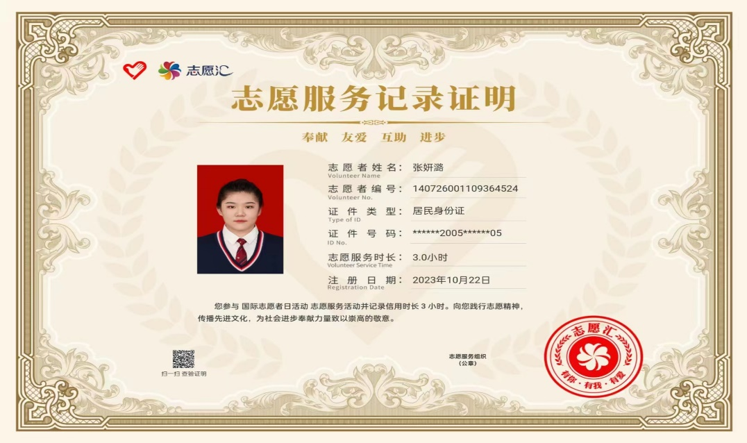 在服务与奉献中,我体验着这份“志愿”的神圣与高尚,未来的日子里,我仍将以饱满的热情传递志愿精神、汇聚爱心力量,以实际行动传递文明、传播温暖。