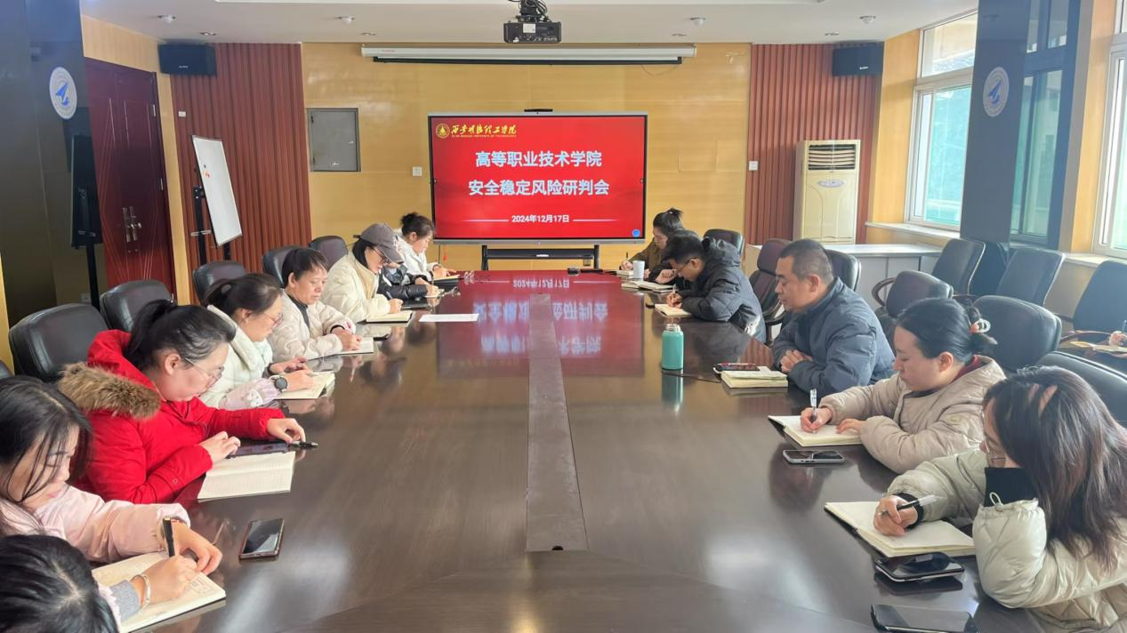 为了深入分析当前学院安全稳定形势,有效预防和应对各类安全事故,确保各项工作稳步推进。12月17日上午,高等职业技术学院在明理楼216会议室召开安全稳定风险研判会。