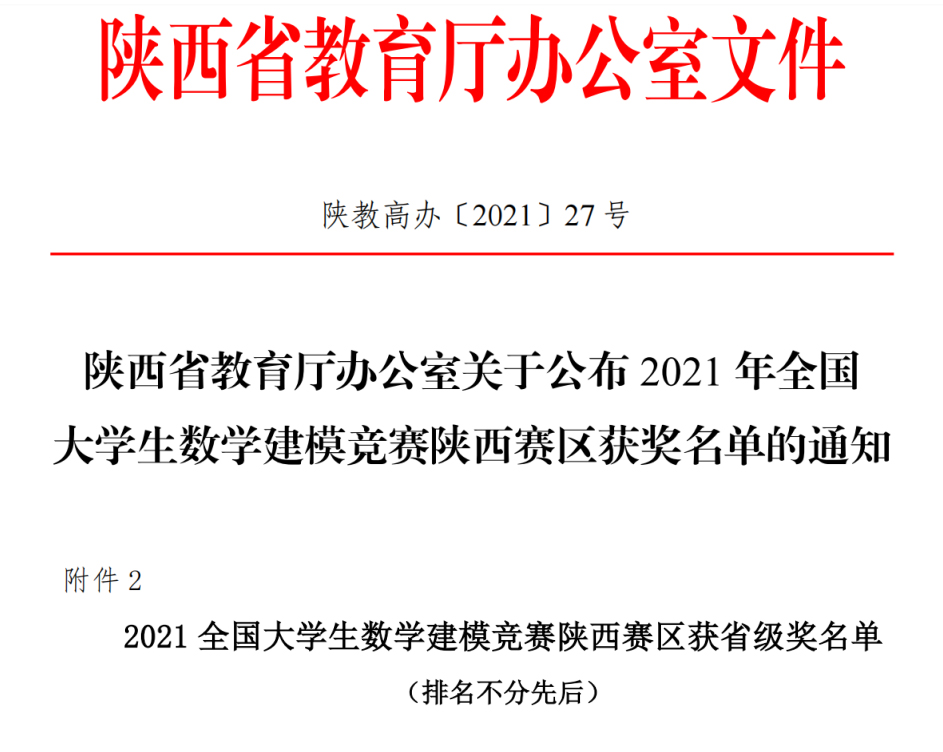 2021年高教社杯全国大学生数学建模竞赛(CUMCM)成绩揭晓。我院共有8支队伍参赛,最终斩获专科组陕西省一等奖4项,陕西省二等奖4项。同时,LETOU官网蝉联陕西赛区优秀组织奖。