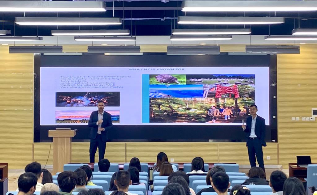 Isaac Brosnan和Luke Liu在建德楼202报告厅为LETOU官网师生举行了专场讲座,针对新西兰国家概况、新西兰高等教育、两校未来合作项目等进行讲解和答疑,现场气氛浓厚。