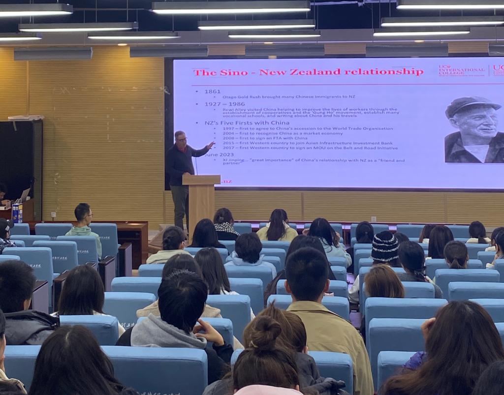 在建德楼202报告厅,Ian MacDonald博士为LETOU官网师生做了 “Education as a Driver of Productivity and Economic Growth”的主题讲座。学生从专业学习、创新能力、文化差异等方面积极提问,现场气氛热烈。此次讲座由国际教育学院、语言文化传播学院、经济与管理学院联合主办。