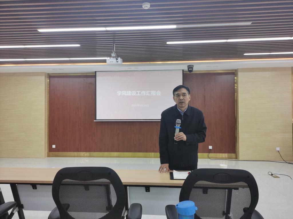良好的学风是潜移默化的巨大而无形的精神力量,时时刻刻都在对学生产生着强烈的熏陶和感染,激励学生奋发努力,健康成长。为了解2020级学生在入校近一年来的学习情况,查漏补缺,为接下来的教育教学打下基础,4月29日上午,学校在明志楼学术报告厅召开2020级学生学风建设工作汇报会。校长杨健君、党委书记阎东明、党委副书记董昊、财务总监马晓军、相关部门负责人、各二级学院党总支书记及全体学生工作干部参加了汇报会。