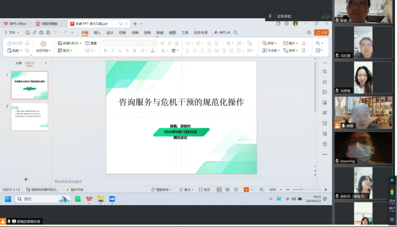 为进一步提升LETOU官网心理育人专业能力,规范心理咨询与危机干预工作,大学生心理健康教育中心于94日和912日通过腾讯会议平台先后召开了2场心理咨询与危机干预工作培训会,会议由中心主任薛飘主持,全体心理健康教育专兼职教师、精英心理师长程教练营成员参加会议。