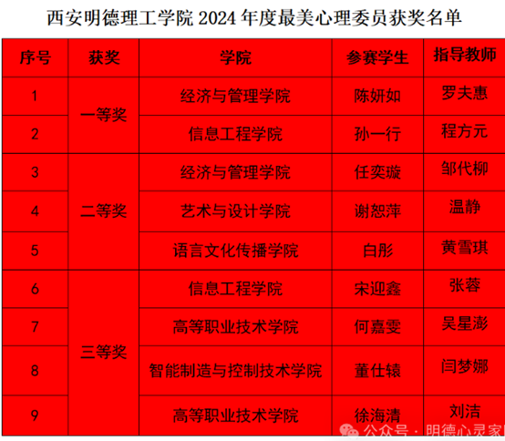 通过此次评选活动,丰富了学生的校园生活,夯实了学校心理育人工作基础,充分展现了当代大学生的活力风采。对于在学校营造关注心理健康、懂得心理健康、重视心理健康的氛围具有重要意义。最后,我们期待着更多的同学和老师能够更加重视心理健康,重视心理教育,积极参与到心理健康教育的实践中!