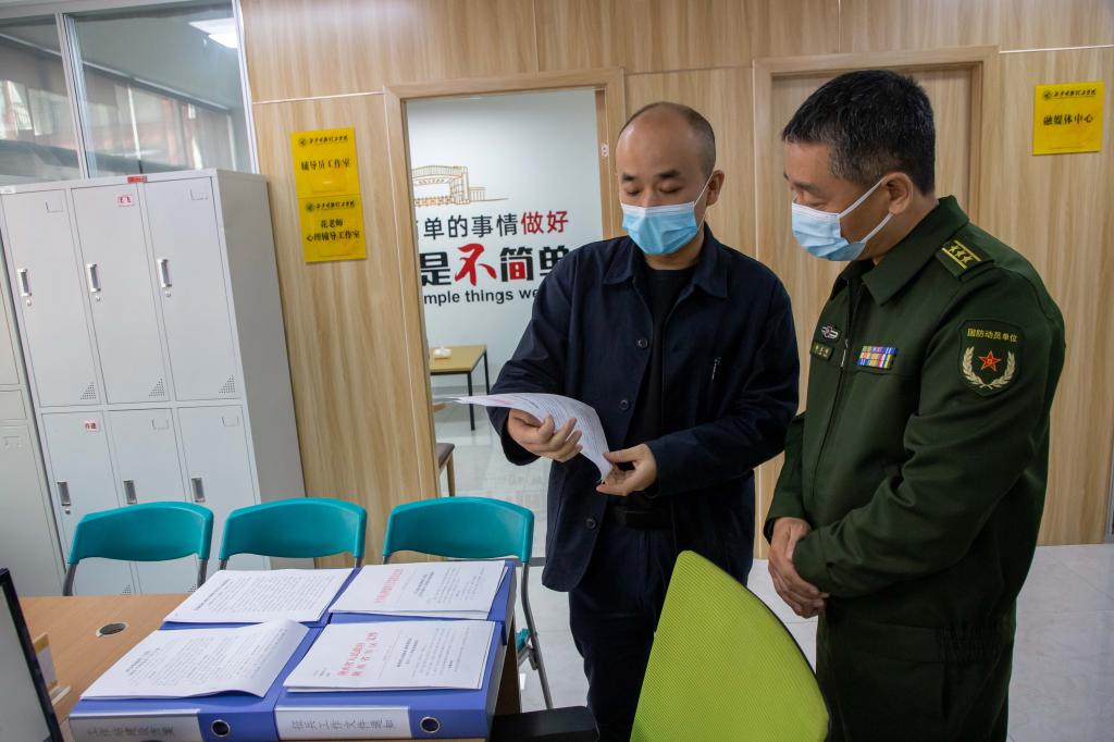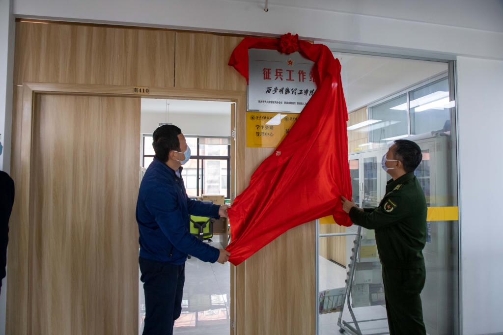 10月11日上午,学校在党委学生工作部举行“征兵工作站”揭牌仪式。长安区人武部部长姬水峰、学校党委副书记董昊、副校长刘星出席,仪式由学校人武部部长童杨梓主持,学校就业办副主任王东辉、征兵工作站站长李传斌、各学院党委副书记、党委学生工作部老师参加。