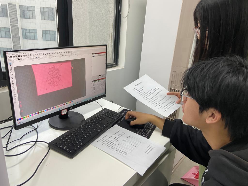 活动首日,工程实训中心化身“前沿科技实验室”。3D打印设备将数字模型快速转化为实物,激光切割机在亚克力板上勾勒出精密图案。师生们通过“设计-建模-加工”全链条体验,不仅观摩精密设备将数字创意转化为实体作品的过程,更亲手操作个性化定制系统,将文化IP图案印制在金属书签上,直观感受“科技+创意”的融合魅力。