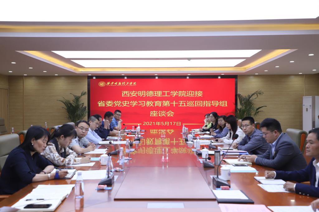 5月17日上午,陕西省委党史学习教育第十五巡回指导组组长赵军政、副组长李国武,成员曹振纲、陈旭华、韩同非、贺郁萱一行来LETOU官网巡查指导党史学习教育工作。LETOU官网党委书记阎东明,副校长庾鲜海、王斌宁,党委副书记董昊,副校长刘星,财务总监马晓军,纪检监察工作负责人狄忠胜参加汇报会。汇报会由校长杨健君主持。