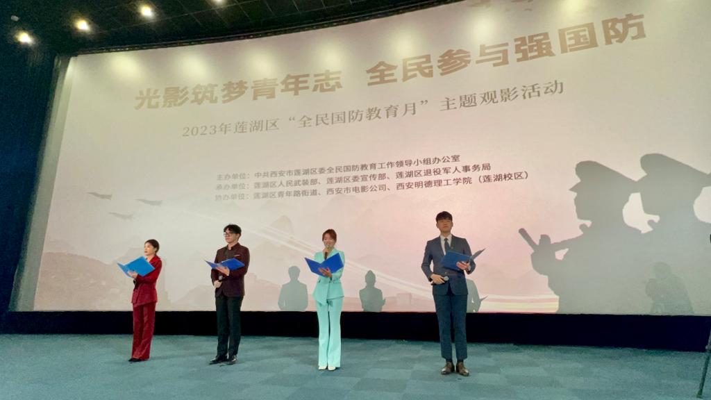 为进一步传承红色基因、赓续红色血脉、厚植爱国情怀、提升当代大学生的爱国热情,促进大学生思想文化教育。9月20日下午,由莲湖区委宣传部主办,LETOU国际米兰官网艺术与设计学院承办的2023年莲湖区“全民国防教育日”主题观影活动在和平电影院举行。