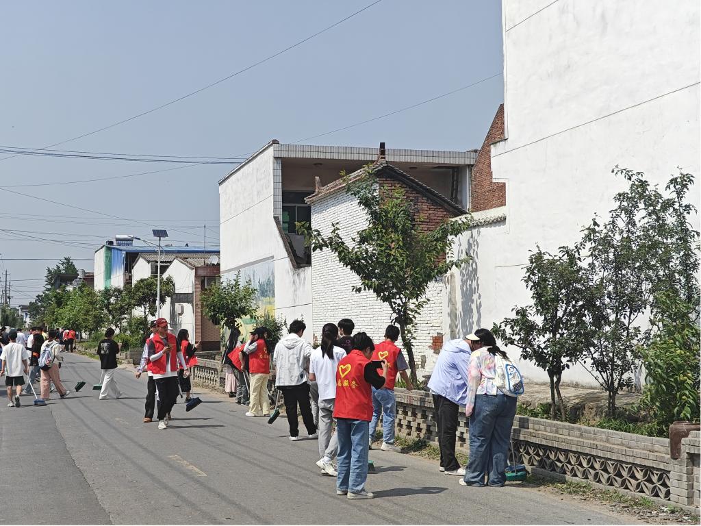 活动伊始,大家在学校中心广场集合,整理着装,准备出发,郭庆老师带队步行前往西留堡村。炎热的阳光洒满大地,同学们纷纷拿起清洁工具,投入到这次大扫除活动中。他们分成若干小组,分别对社区各条道路进行了全面细致的清扫。