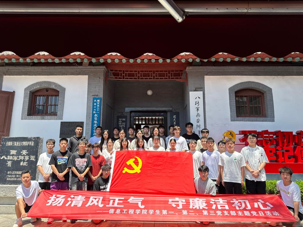 为扎实开展好党纪学习教育,增强廉洁自律意识,6月12日,信息工程学院学生第一、第二、第三党支部组织毕业生党员、新发展党员、入党积极分子40余名同志赴八路军西安办事处纪念馆开展“扬清风正气守廉洁初心”主题党日活动。