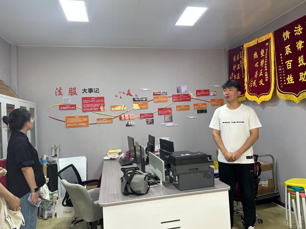 随后,党员们走进法律服务中心,这里不仅是学生们将法律知识应用于实践的重要平台,也是为社会提供公益法律服务的前沿阵地。在工作人员的介绍下,党员们了解到该中心秉持着“服务社会、传播法治”的宗旨,为广大师生和周边社区居民提供免费的法律咨询、法律援助以及法律知识普及等服务。