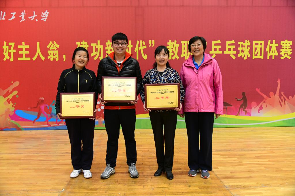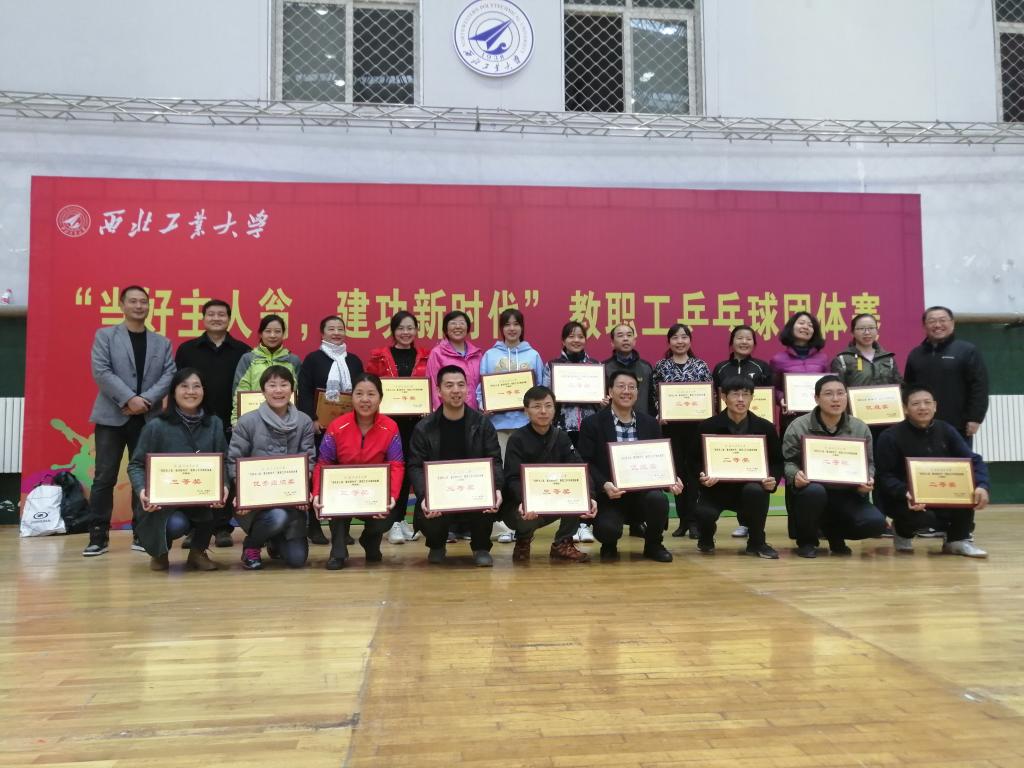 11月23日、24日,西北工业大学校工会和体育部联合举办的“当好主人翁,建功新时代” 教职工乒乓球团体赛在友谊校区翱翔体育馆进行。明德学院代表队最终荣获二等奖。