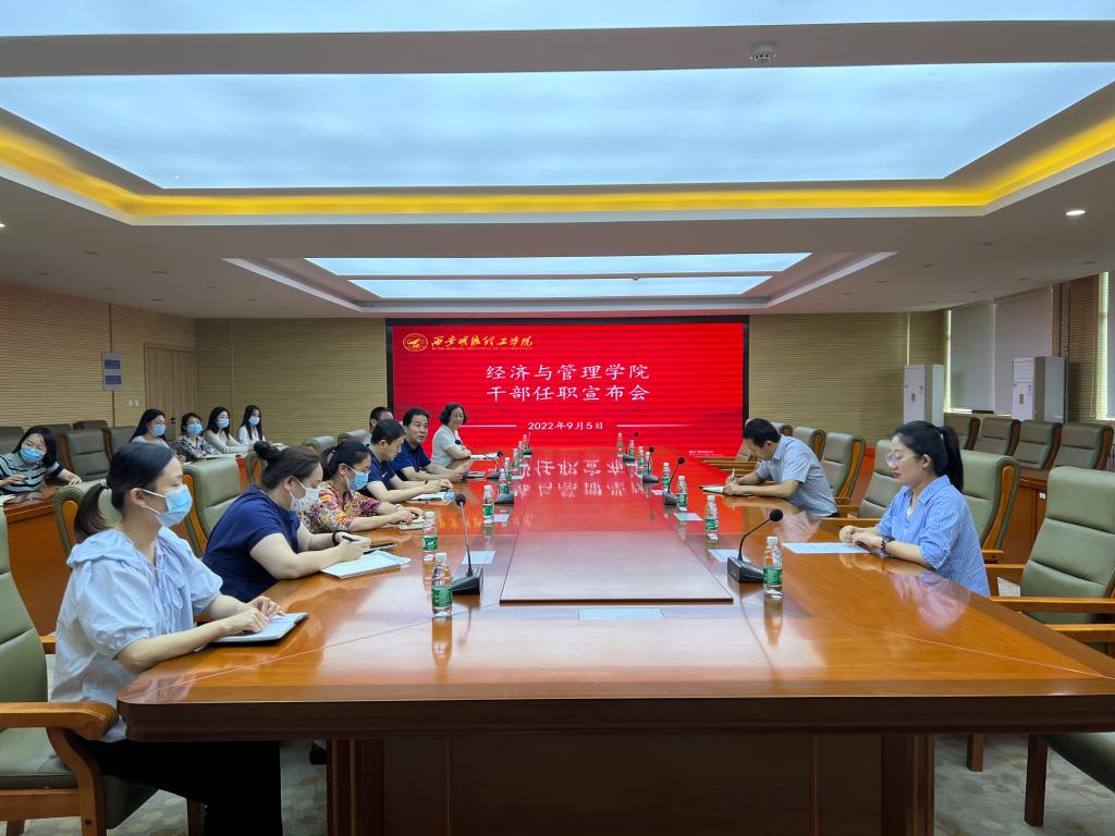 2022年9月5日,经济与管理学院在明志楼518召开关于雷娟同志的任命大会。学校党委副书记董昊、人力资源处干部管理科科长郭佳,经济与管理学院院长郭鹏带领全体班子成员及教师、辅导员、实验员代表参会。会议由郭鹏院长主持。