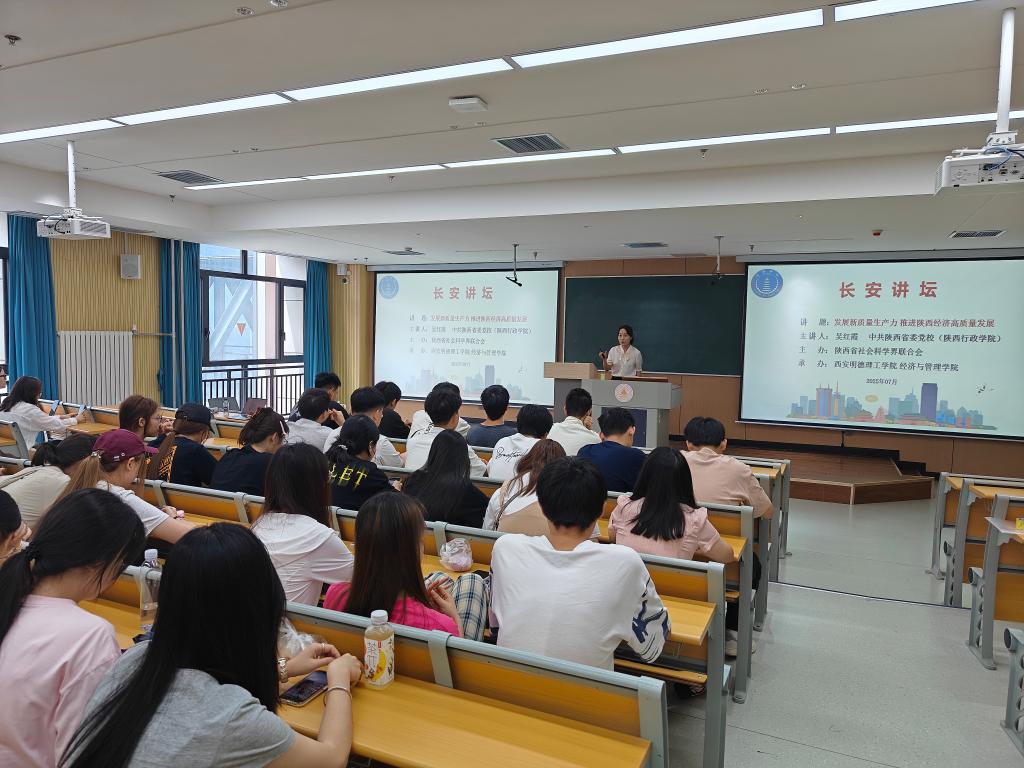 吴红霞老师以“发展新质生产力,推进陕西经济高质量发展”为主题展开分享。她结合陕西区域经济发展实际,深入剖析了新质生产力的核心内涵与发展路径,详细阐述了新质生产力在推动地方经济高质量发展中的重要作用,为学生们揭示了区域经济与金融领域的紧密联系及未来发展机遇,启发学生将专业能力与区域发展需求紧密结合,为未来投身金融支持实体经济实践提供了清晰指引。