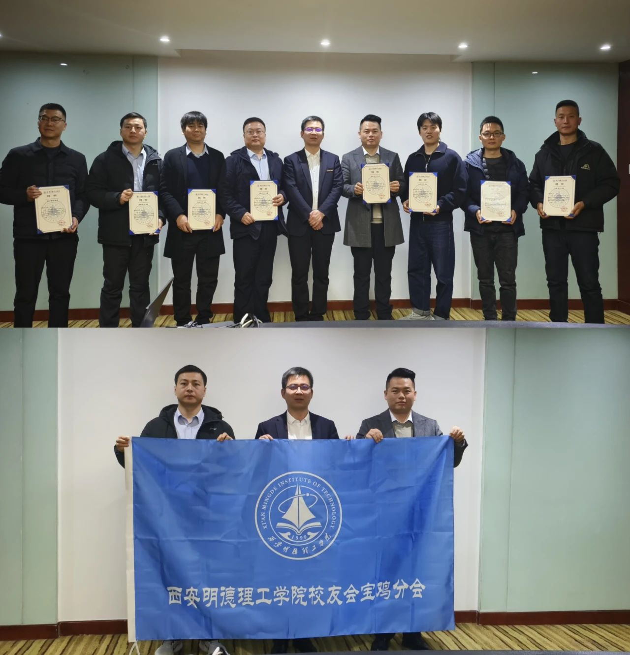 党委副书记、副校长刘星为宝鸡校友分会第一届理事会领导班子成员颁发聘书并授会旗。