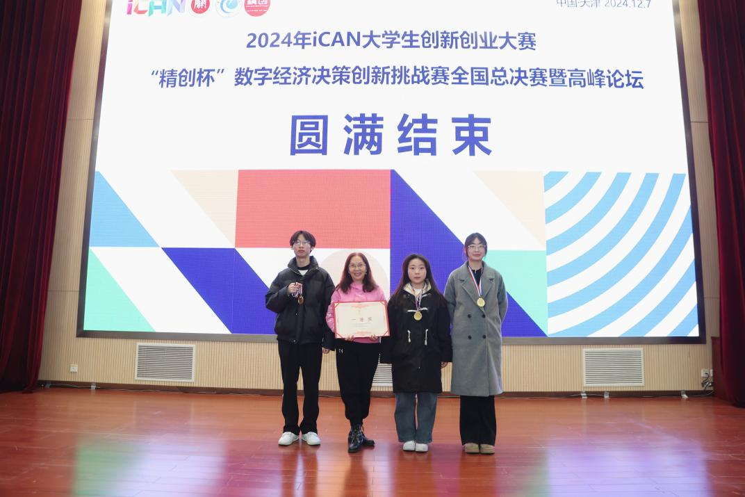 2024年iCAN大学生创新创业大赛“精创杯”数字经济决策创新挑战赛全国总决赛于12月6-8日在天津师范大学举行,来自全国各地140所院校的140支队伍参赛,LETOU国际米兰官网由张晓燕老师带领的学生黄东、李孜怡、张卓清参赛队伍“冬”,获得全国一等奖。