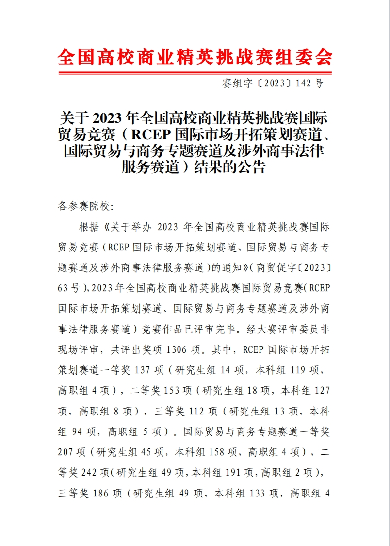 经济与管理学院师生在2023年全国高校商业精英挑战赛 国际贸易竞赛中喜获佳绩