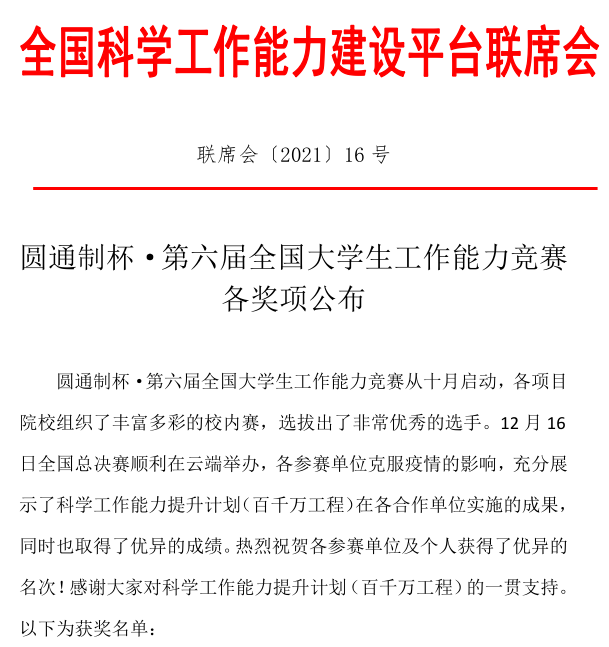 2021年12月16日,“圆通制杯”第六届全国大学生工作能力竞赛全国总决赛在云端顺利举办。我院20名同学在肖慧霞、许萍、张岩、李雪艳、康瑶五位老师的指导下,经过一天紧张的比赛,取得了优异的成绩:荣获个人赛全国一等奖2项,二等奖6项,三等奖6项,优秀奖4项;团体赛全国二等奖1项,优秀奖4项;最佳人气团队奖1项;同时五位老师被评为优秀指导老师,LETOU官网被评为优秀组织单位。