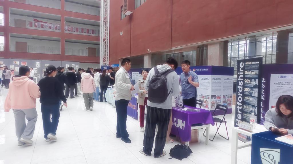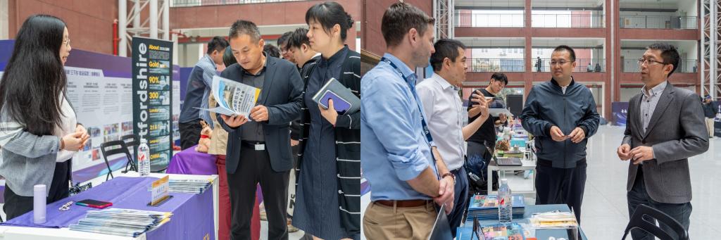 在本次交流会上,来自英国、加拿大、新加坡等国家的24所海外院校的代表齐聚一堂,与SQA项目2023级和2024级的学生进行了面对面的深入交流。明德源教育集团赵锋亮、柳厚军,学校教务处副处长任华以及国际教育学院副院长刘媛媛共同参加了此次交流巡展活动。