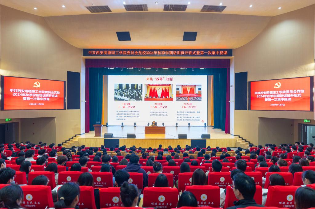 为深入学习贯彻习近平新时代中国特色社会主义思想和党的二十大、二十届三中全会精神,扎实做好党员发展和教育工作,11月7日晚,学校在四季廊桥报告厅举行2024年秋季学期党校培训班开班式暨第一次集中授课。校党委书记马川鑫,党委副书记、副校长、纪委书记白秦川,各基层党委(党总支)书记参加开班式。开班式由党委组织宣传部部长高超主持。