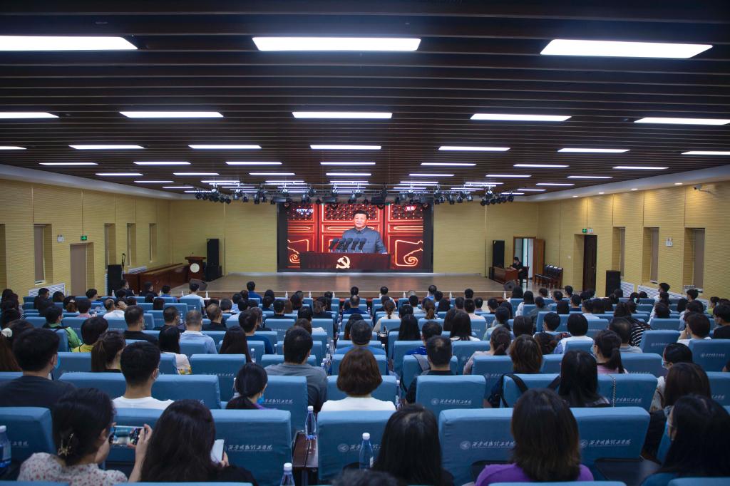 7月1日上午8时,庆祝中国共产党成立100周年大会在北京天安门广场隆重举行。中共中央总书记、国家主席、中央军委主席习近平出席并发表重要讲话。学校校领导、科级以上干部、学生工作干部、教职工党员、民主党派人士、学生代表在建德楼203集中收看大会盛况。